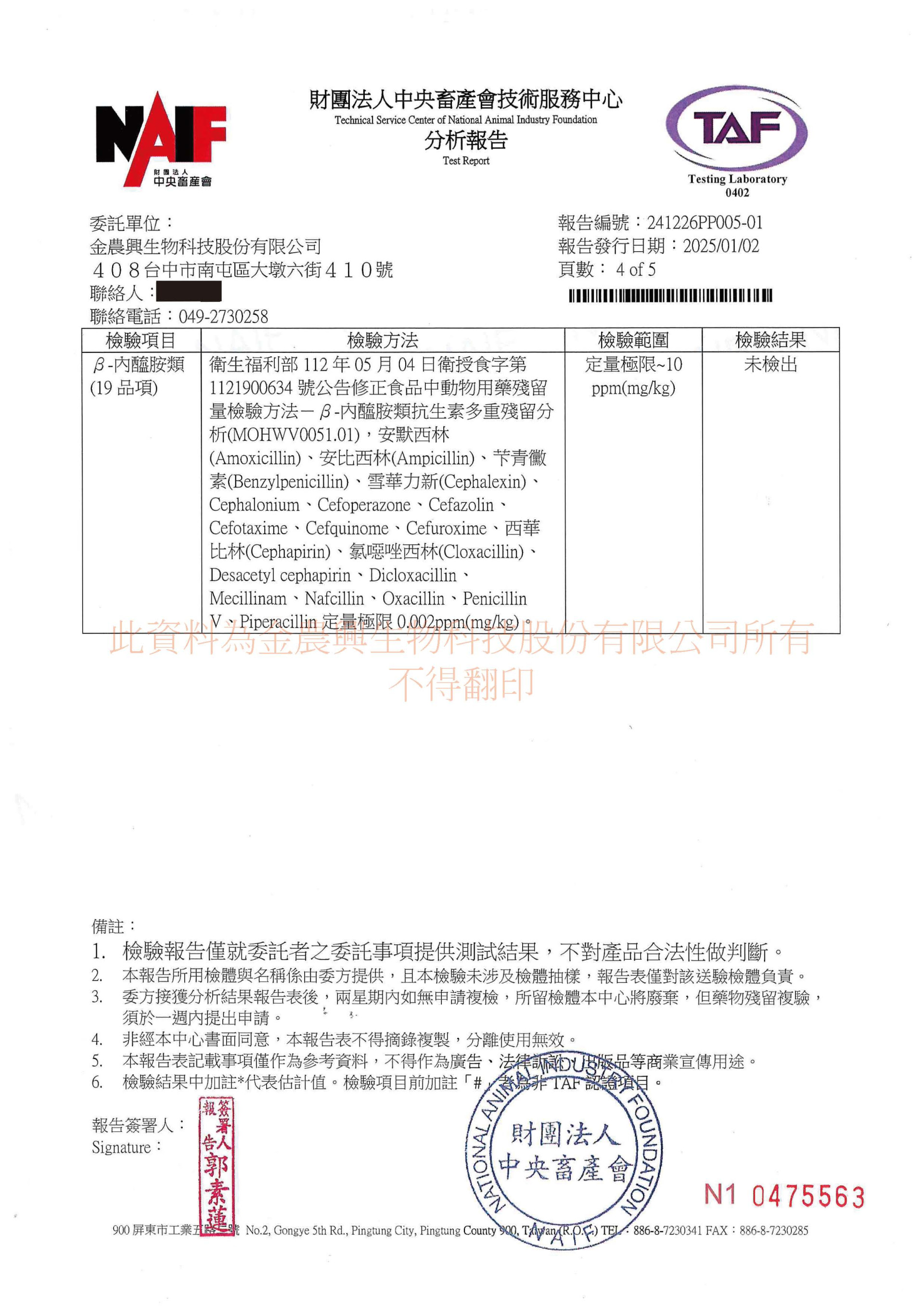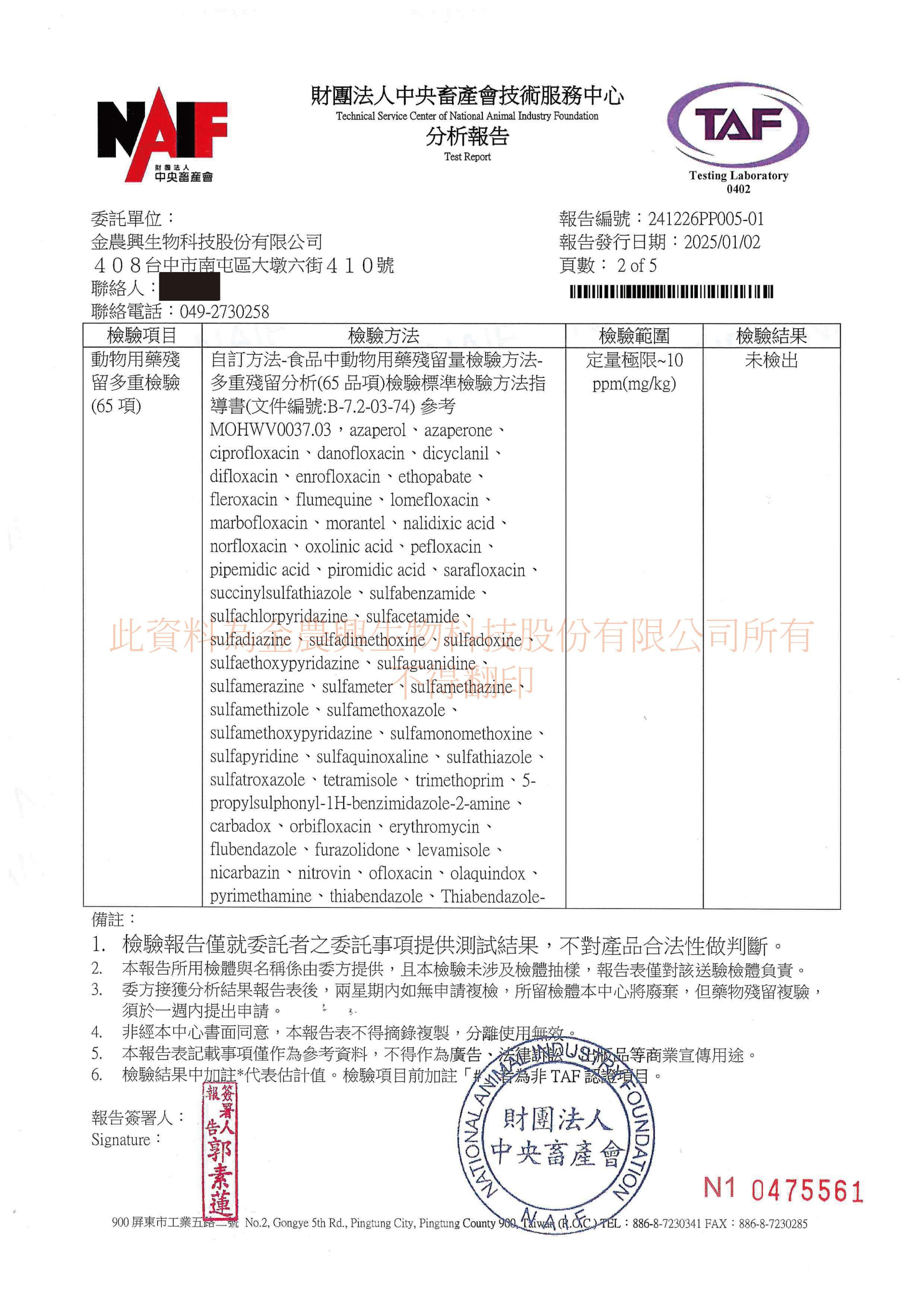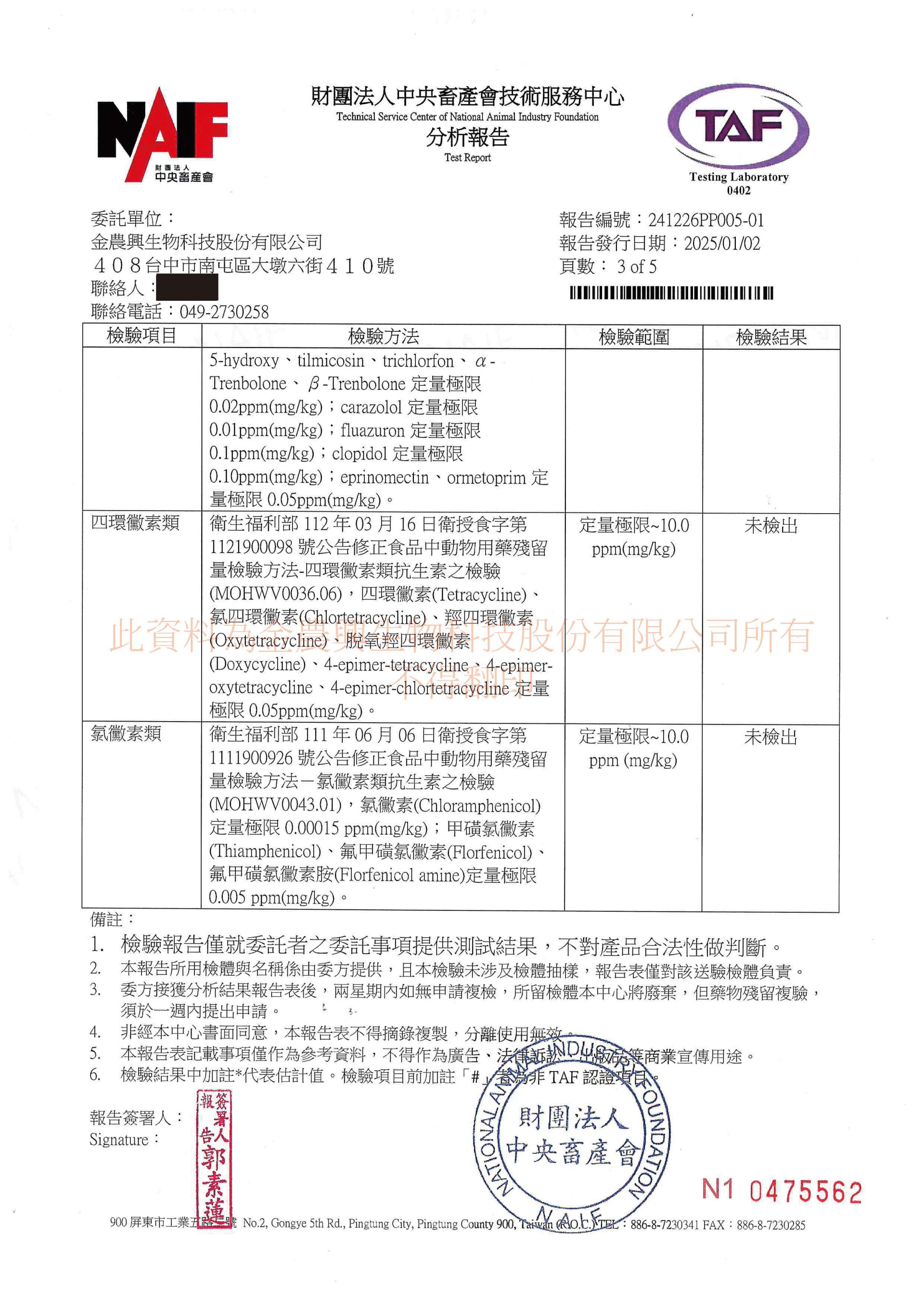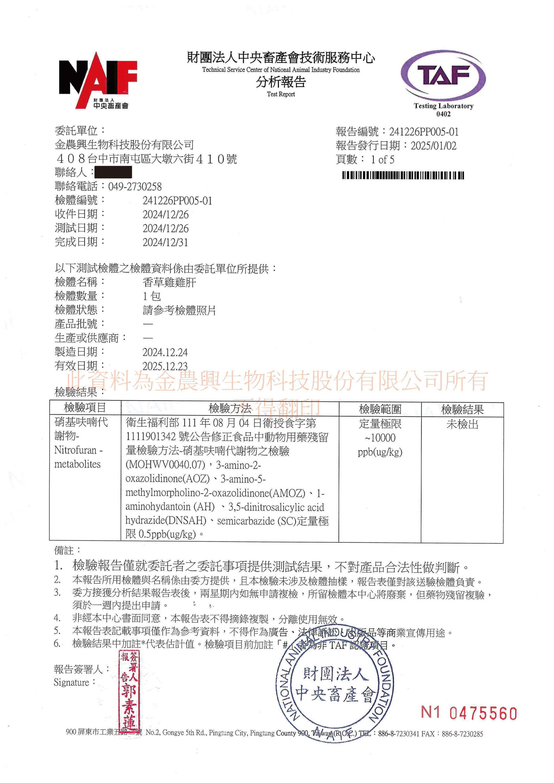 20250102香草雞雞肝-硝基呋喃代謝物、動物用藥殘留多重檢驗(65項)、四環黴素類、氯黴素、β-內醯胺類