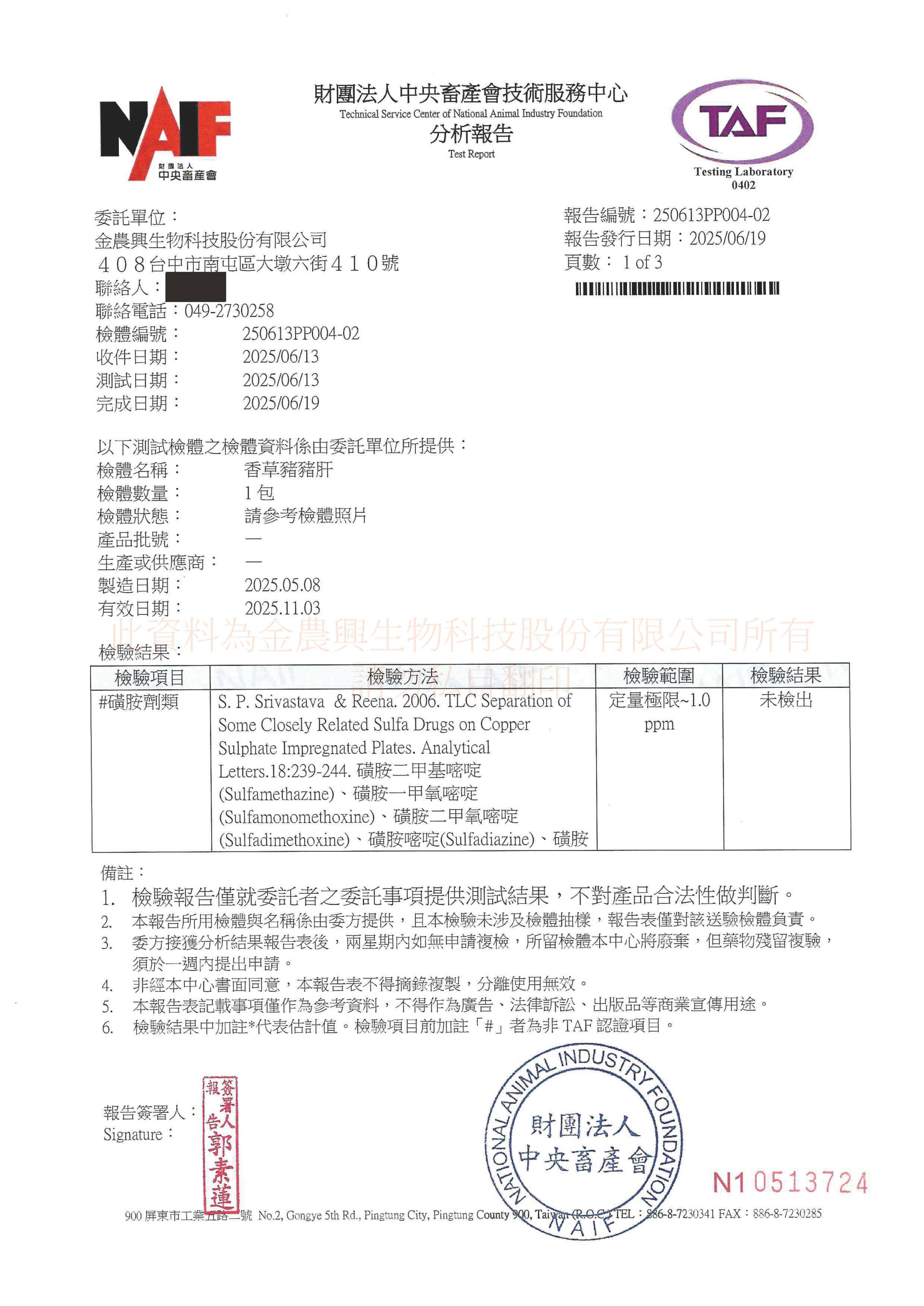 20250619香草豬豬肝-磺胺劑類、抗生物質、四環黴素類